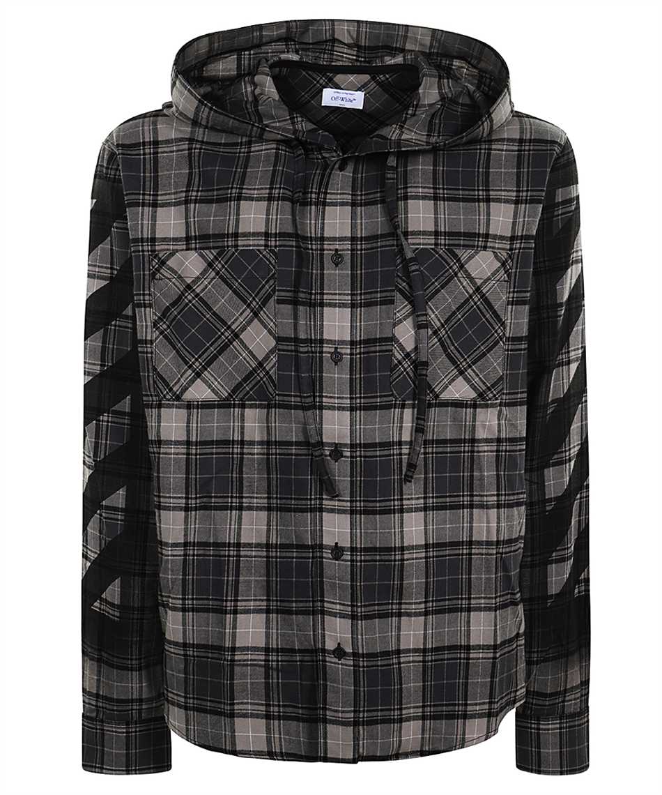 Off-White OMGE031F25FAB001 SPRAY DIAG CHECK FLAN HOOD SH Hemd - Grau