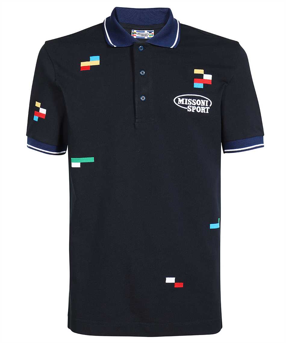 MISSONI UC23S202 SHORT-SLEEVED IN COTTON PIQUÉ WITH EMBROIDERED PIXELS Polo - Blue