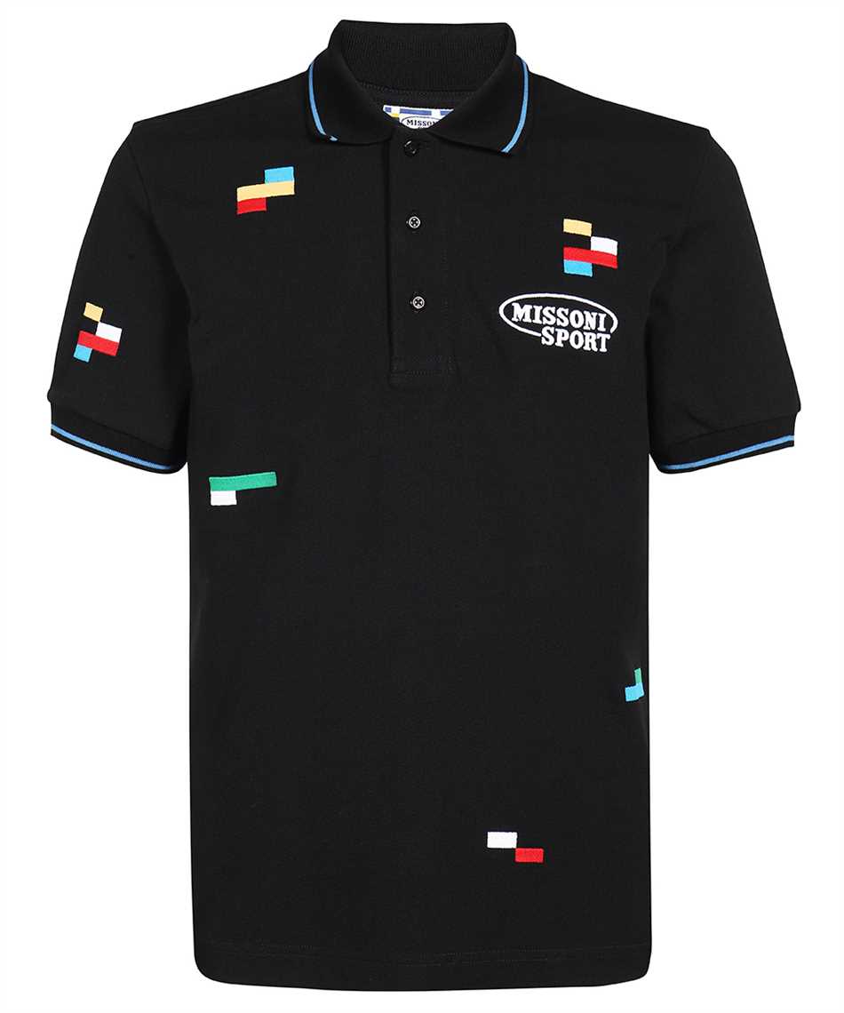 MISSONI UC23S202 SHORT-SLEEVED IN COTTON PIQUÉ WITH EMBROIDERED PIXELS Polo - Black