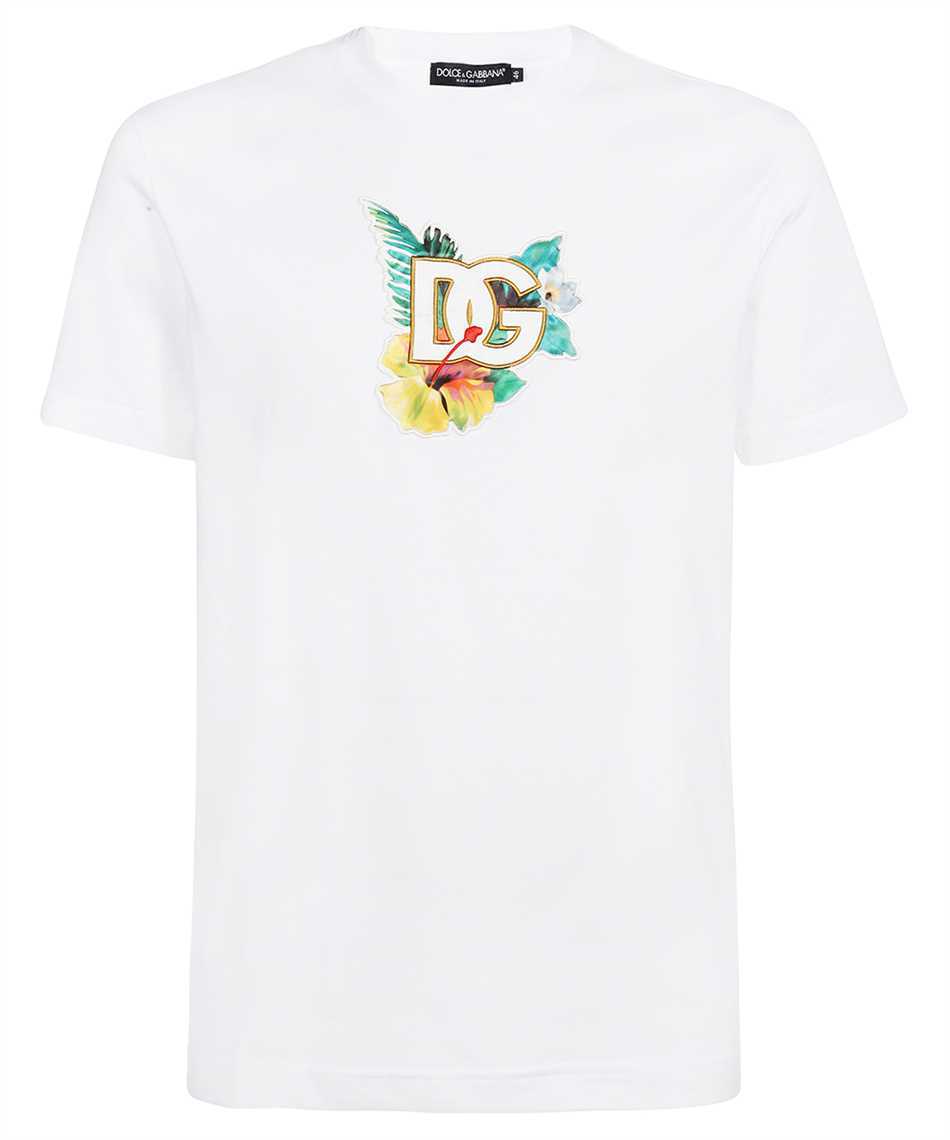 Dolce & Gabbana G8PT1Z FU7EQ HAWAIIAN-PRINT ROUND-NECK WITH DG EMBROIDERY Tričko - Biela